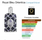 Royal Bleu de Orientica é um perfume Compartilhável. Esta é uma nova fragrância. Royal Bleu foi lançada em 2022. As notas de topo são: Maçã Verde, Lavanda, Pimenta, Bergamota e Mandarina. As notas de coração são: Cardamomo, Violeta, Jasmim e Gerânio. As notas de fundo são: Sândalo, Madeira Guaiac, Patchouli, Baunilha e Almíscar.